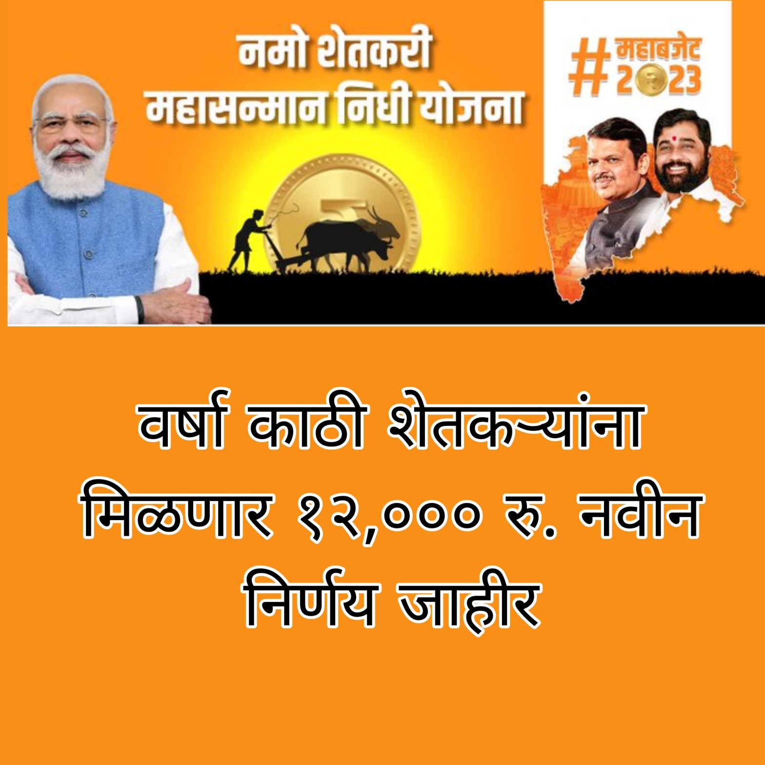 आता शेतकऱ्यांना प्रति वर्षी १२००० रुपये मिळणार. आपल्या प्रिय शेतकरी बांधवांनो आपल्यासाठी आनंदाची बातमी. या योजनेत केंद्र सरकारच्या प्रती वर्ष प्रती शेतकरी ६००० रुपयात राज्य सरकार आणखी ६००० रुपये भर घालणार आहे. त्यामुळे राज्यातील शेतकऱ्यांना १२००० रुपये प्रति वर्षी मिळतील.याचा लाभ एक कोटी १५ लाख शेतकरी कुटुंबांना मिळणार आहे. यासाठी २०२३-२०२४ साठी ६,९०० नऊशे कोटीContinue reading ““नमो शेतकरी महासन्मान निधी योजना””