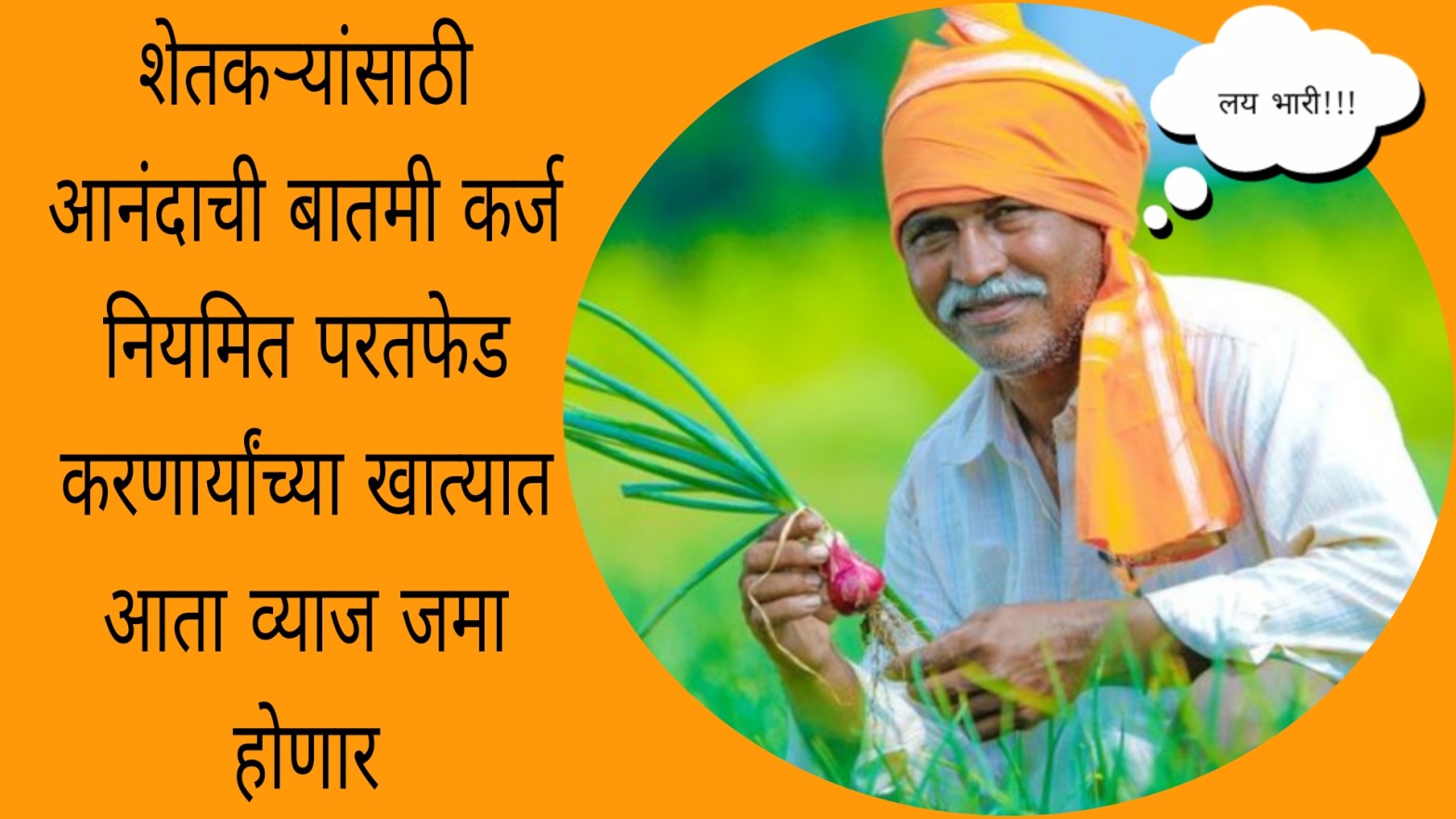 शेतकऱ्यांसाठी आनंदाची बातमी नियमित कर्ज परतफेड करणाऱ्यांच्या खात्यात आता व्याज जमा होणार